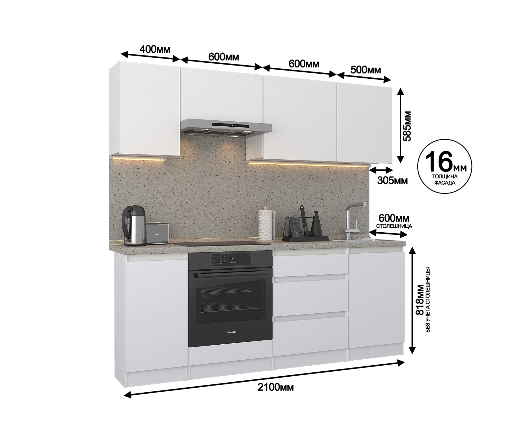 Кухонный гарнитур Леон прямой 210 см, белый Код 00000331072