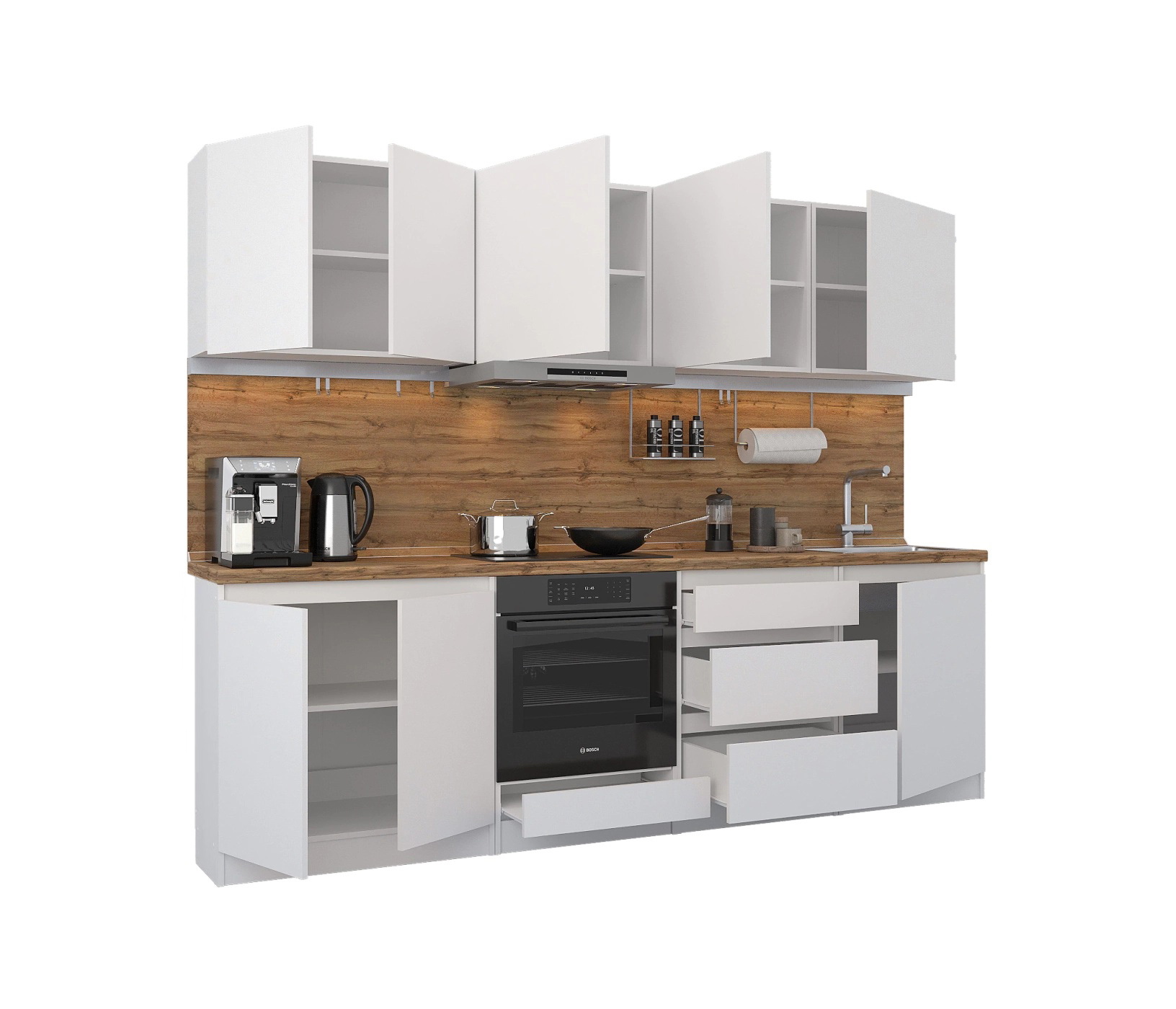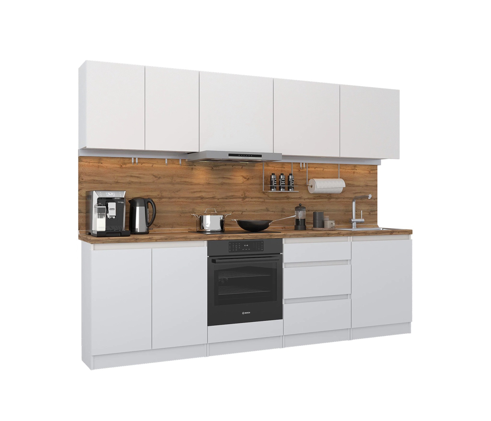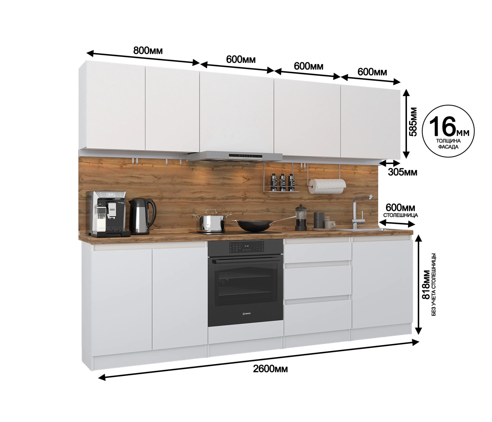 Кухонный гарнитур Леон прямой 260 см, белый (Белый)