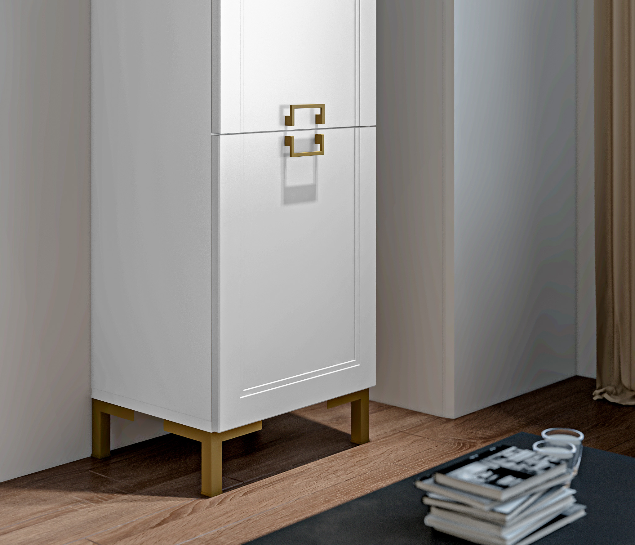 Золотистые ручки и ножки коллекции "Ассоль" добавляют неповторимый шик и изысканность, завершая образ тонким и стильным блеском. Эти акценты создают атмосферу роскоши и утонченности. Они играют роль визуального украшения, дополняя общий вид мебели и придавая ей особый шарм и элегантность.