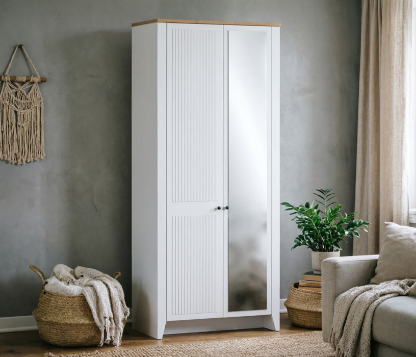 Шкаф 2 дверный Монтана СБ-3553 Белый Альпийский,Дуб Гамильтон/МДФ Дуб Белый (Белый Альпийский,Дуб Гамильтон)
