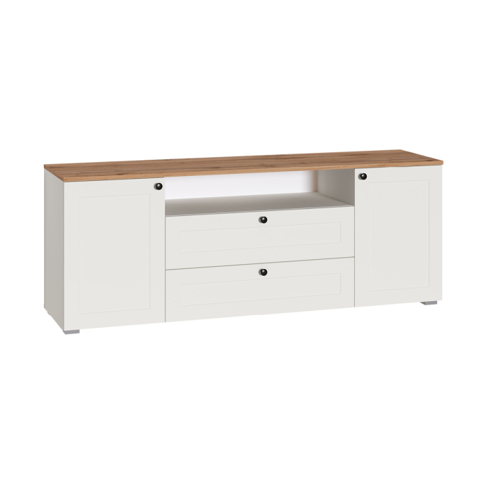 Тумба под ТВ Остин 16.47, белая шагрень, дуб золотой крафт Код R0000302060