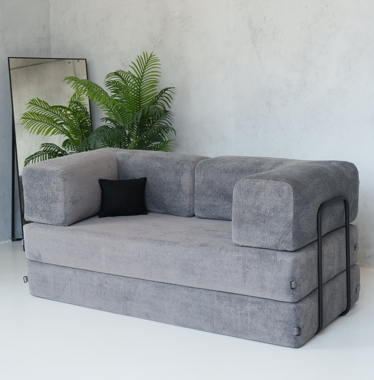 Бескаркасный раскладной «Реймонд» — это не просто предмет мебели, а продуманное до мелочей решение для тех, кто ищет идеальный баланс между изысканным комфортом и повседневной функциональностью. Его лаконичный дизайн с подлокотниками гармонично впишется в любую комнату, будь то просторная гостиная, где он станет центром притяжения для семьи и друзей, уютная спальня или даже стильная кухня-студия. Эта складная прямая модель — универсальный ответ на вопрос, как эффективно использовать каждый сантиметр вашего дома. Он за пару легких движений трансформируется в полноценное и удивительно удобное спальное место, готовое принять задержавшихся гостей или служить вам кроватью для ежедневного здорового сна.