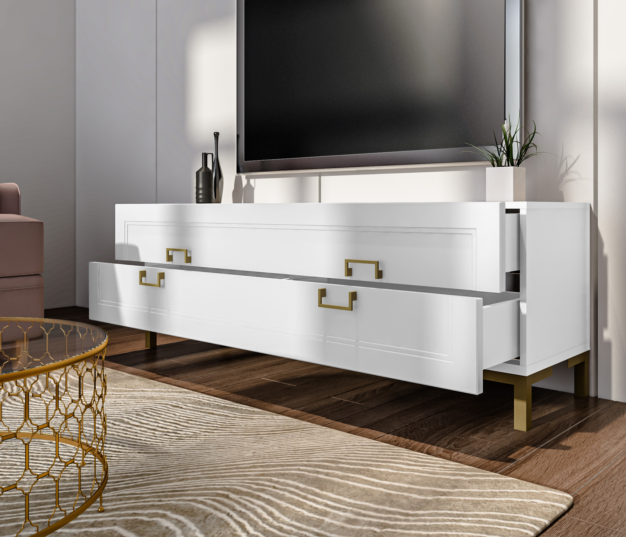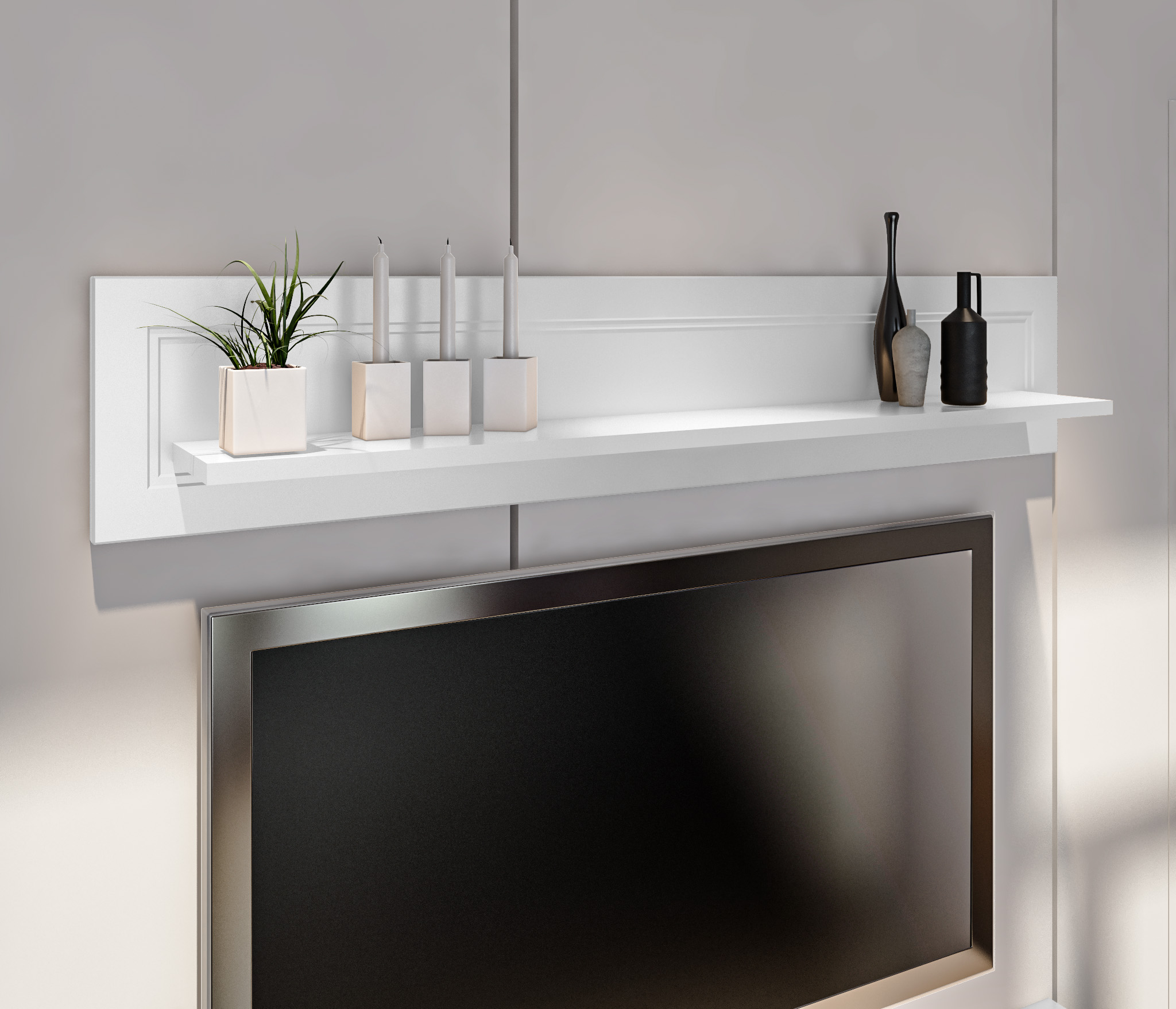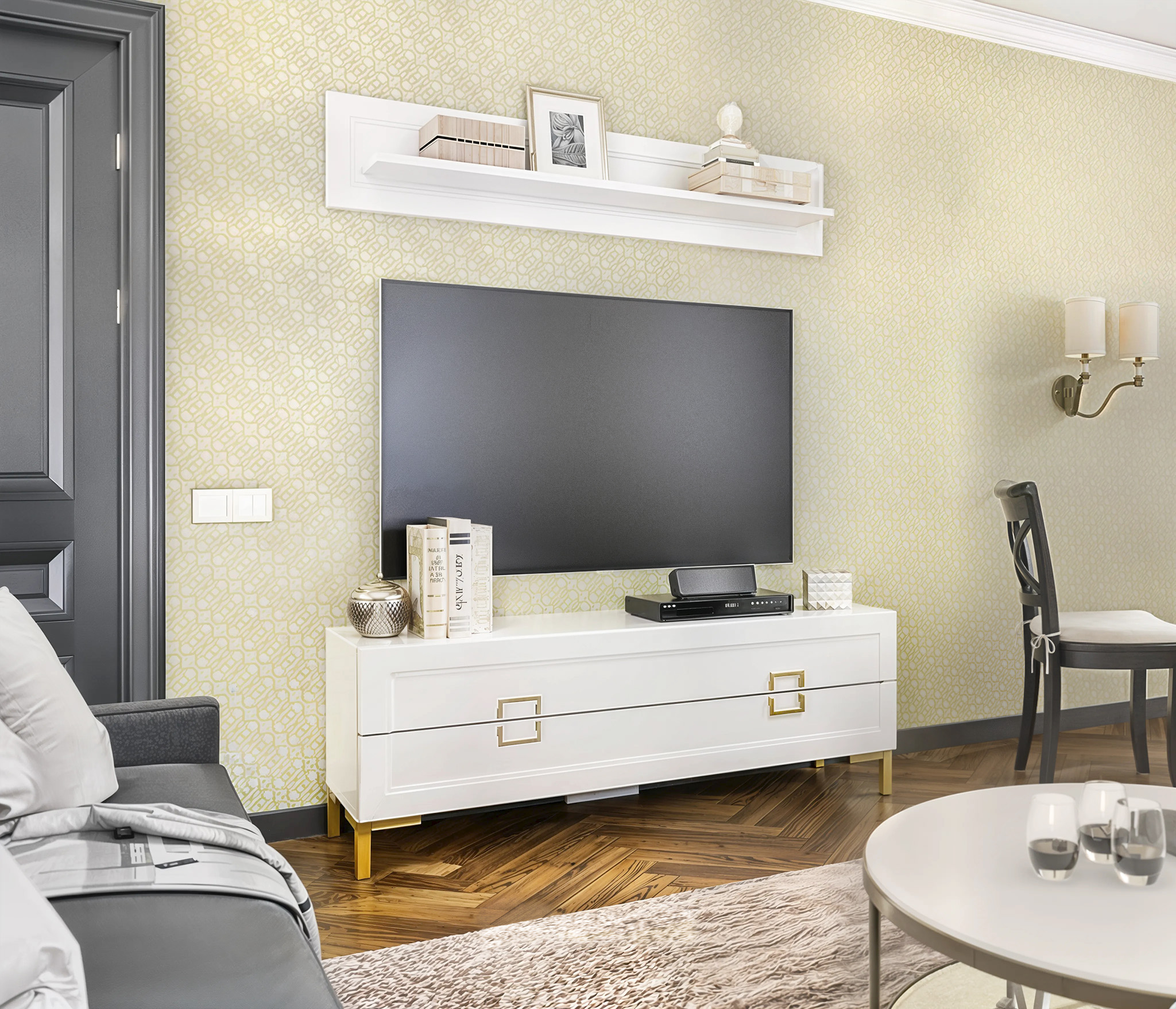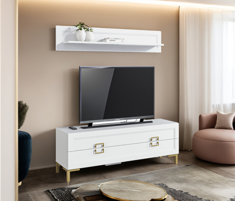 Комплект для гостиной, тумба ТВ и полка, Белый (Белый)