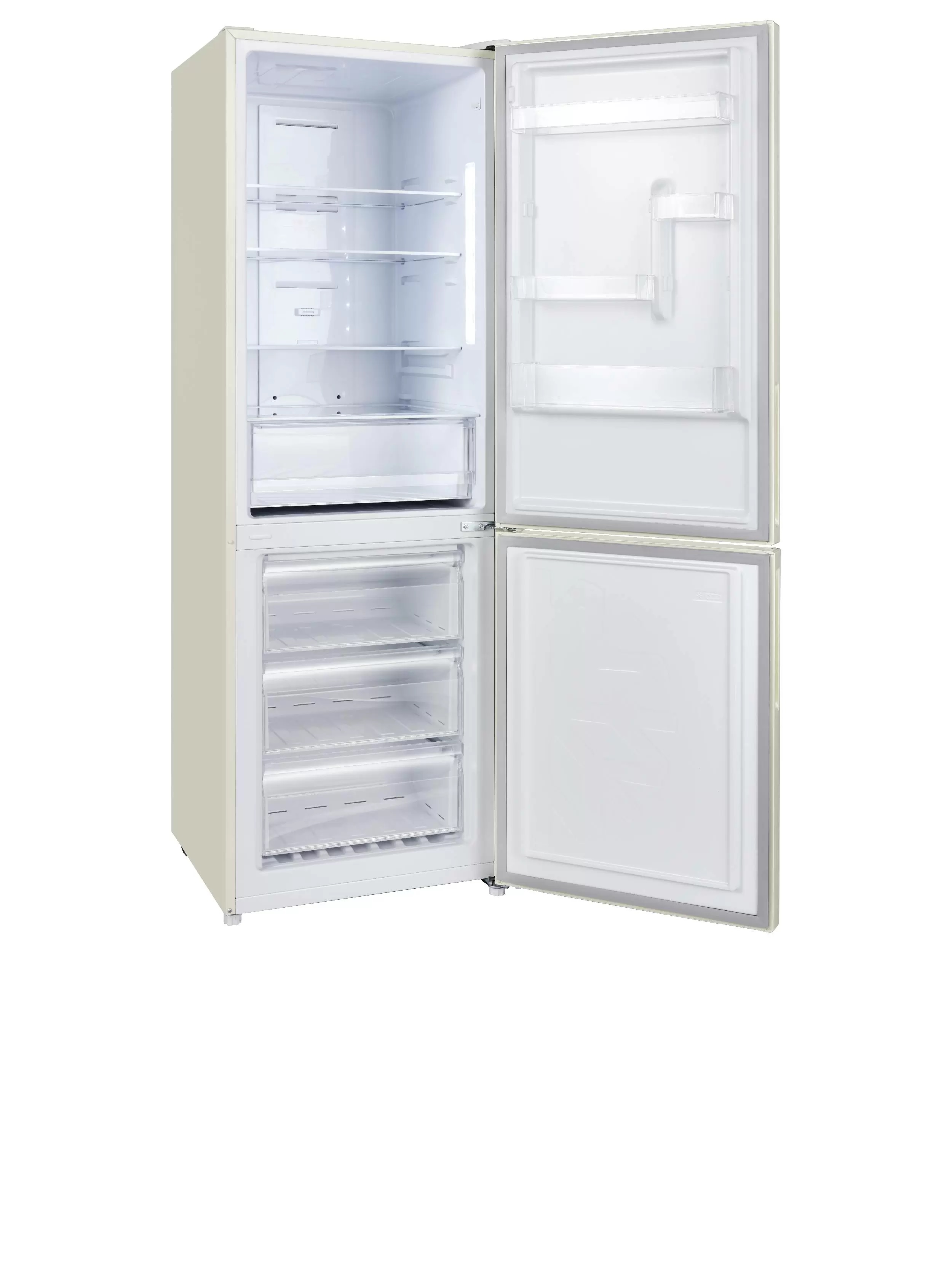 Холодильник-морозильник с функцией No Frost, цвет: бежевый, класс энергопотребления: A+, электронное управление с внешним дисплеем, зона свежести, 3 полки из закаленного стекла, 4 прозрачных дверных полок, подставка для яиц, контейнер для льда, LED освещение х/о. Количество компрессоров: 1. Мощность замораживания (кг/24 ч): 4,5. Длительность сохранения холода при отключении электроэнергии (ч): 7. Общий полезный объем 317л. Объем нетто холодильного отделения, л: 233, объем нетто морозильного отделения, л: 94, уровень шума 41 дБ, 1855х595х635 мм.