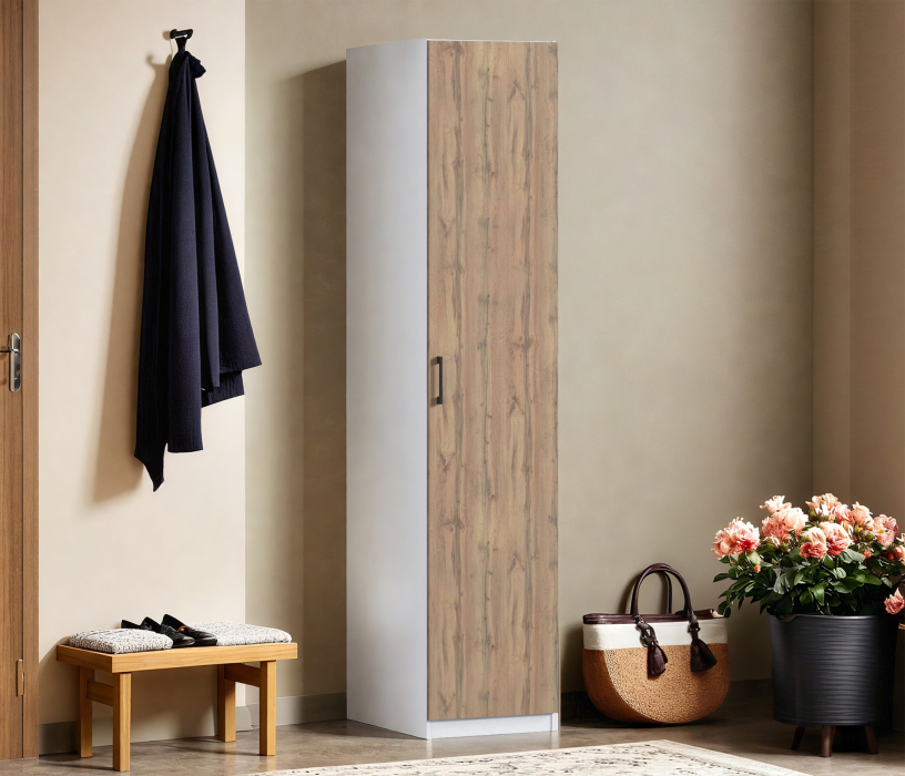 Шкаф однодверный Макс 500 мм, вариант №4 (ЛДСП) (Дуб вотан/Белый) Код 00000337214