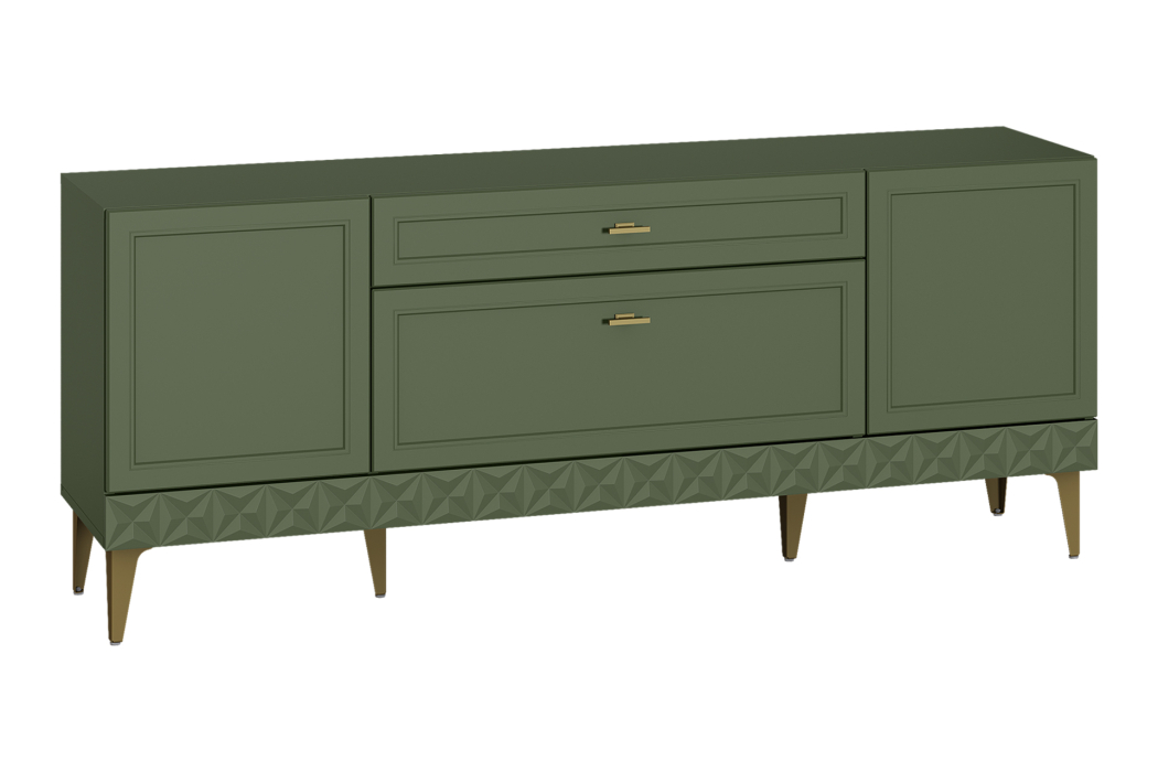 Изящные линии, глубокая фрезеровка фасадов из МДФ и благородные оттенки. Утончённая «Слоновая кость» и изысканная «Олива Шагрень» с глубоким зелёным тоном — создают атмосферу уюта, тепла и благородства. Металлические ручки и опоры золотого цвета придают мебели утончённый блеск, а петли и направляющие с доводчиками обеспечивают плавное и бесшумное закрытие фасадов.