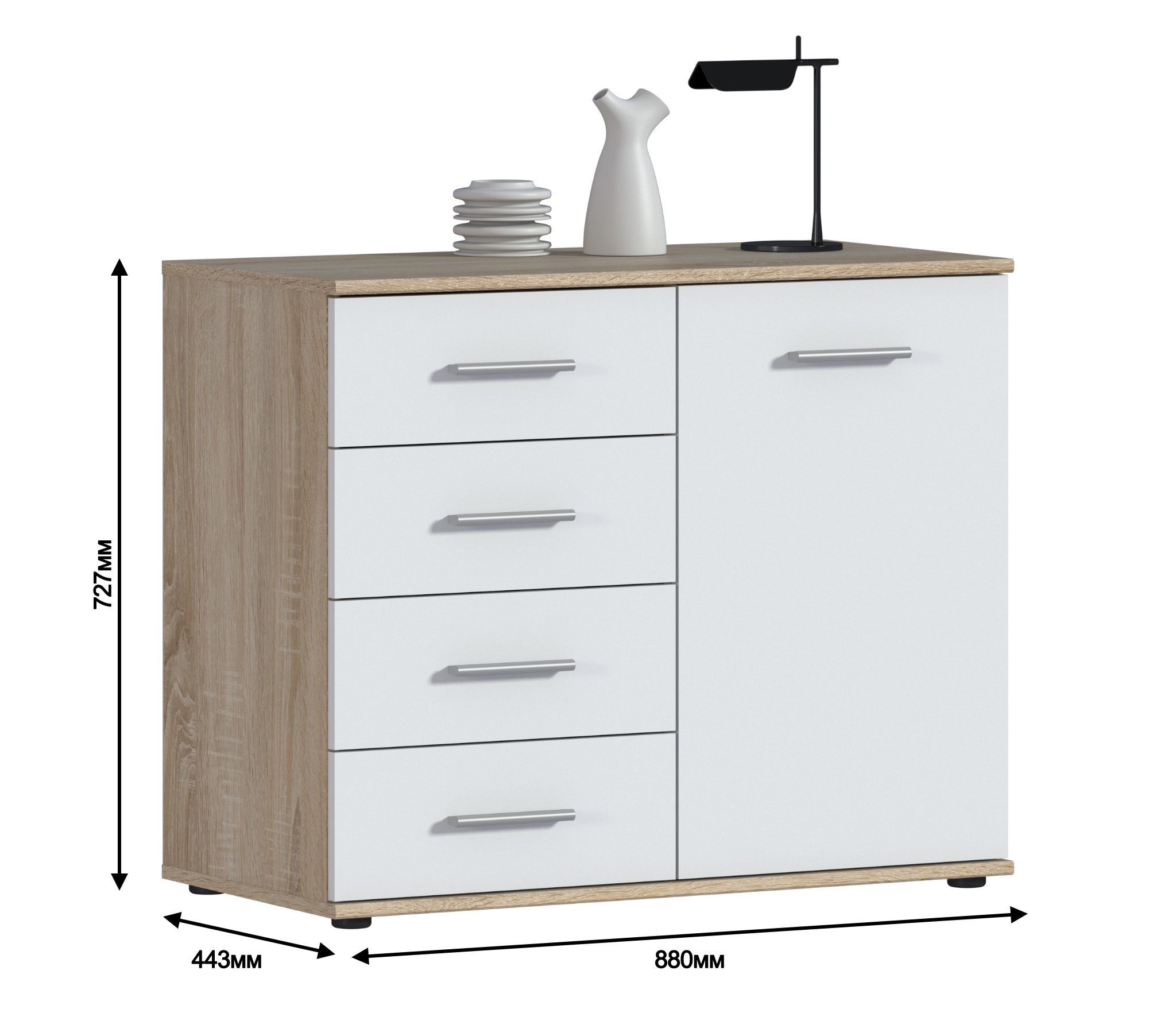 Комод Мамбо СБ-2752 (Белый/Дуб Сонома)