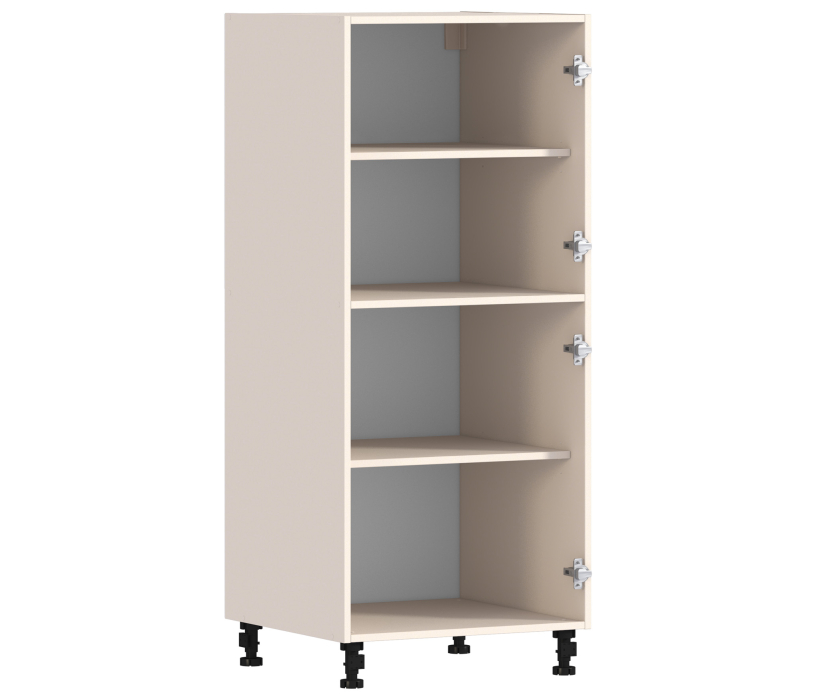 Компактный одностворчатый пенал Регина входит в комплект кухонной системы. Оптимальная высота пенала предусматривает размещение над ним навесных полок. Используя этот прием, вы добьетесь оригинального дизайна и максимально заполните полезную площадь. Четыре глубоких отсека внутри пенала прекрасно подойдут для размещения мелкой бытовой техники, продуктов длительного срока хранения и прочей кухонной утвари. Все детали шкафа выполнены из экологичных материалов с покрытием под орех.