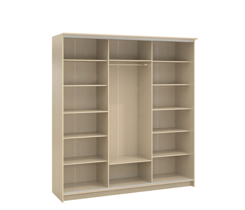 Функциональный и вместительный шкаф-купе. Все панели и полки шкафа выполнены из экологичной прессованной древесины высокого качества. В комплекте 12 полок, которые можно расположить на удобной для вас высоте. В средней части шкафа установлен кронштейн для одежды. Возможен заказ дополнительных элементов – мебельных лифтов, ящиков, держателей или подставок для обуви.