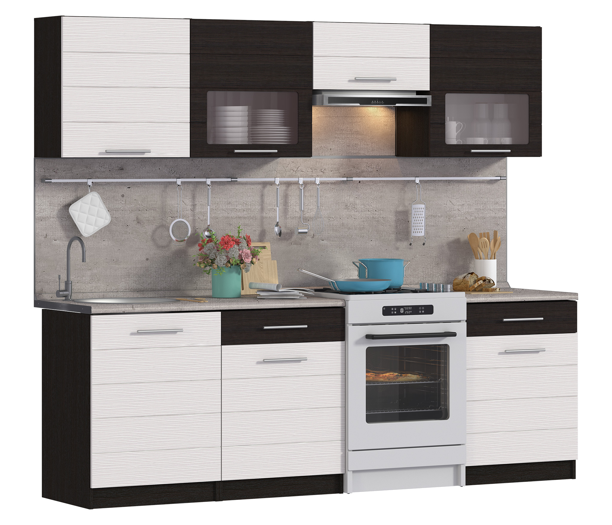 Кухонный гарнитур Милена Дуб Феррара/Онденс/Венге 2,4 м Код 00000264575