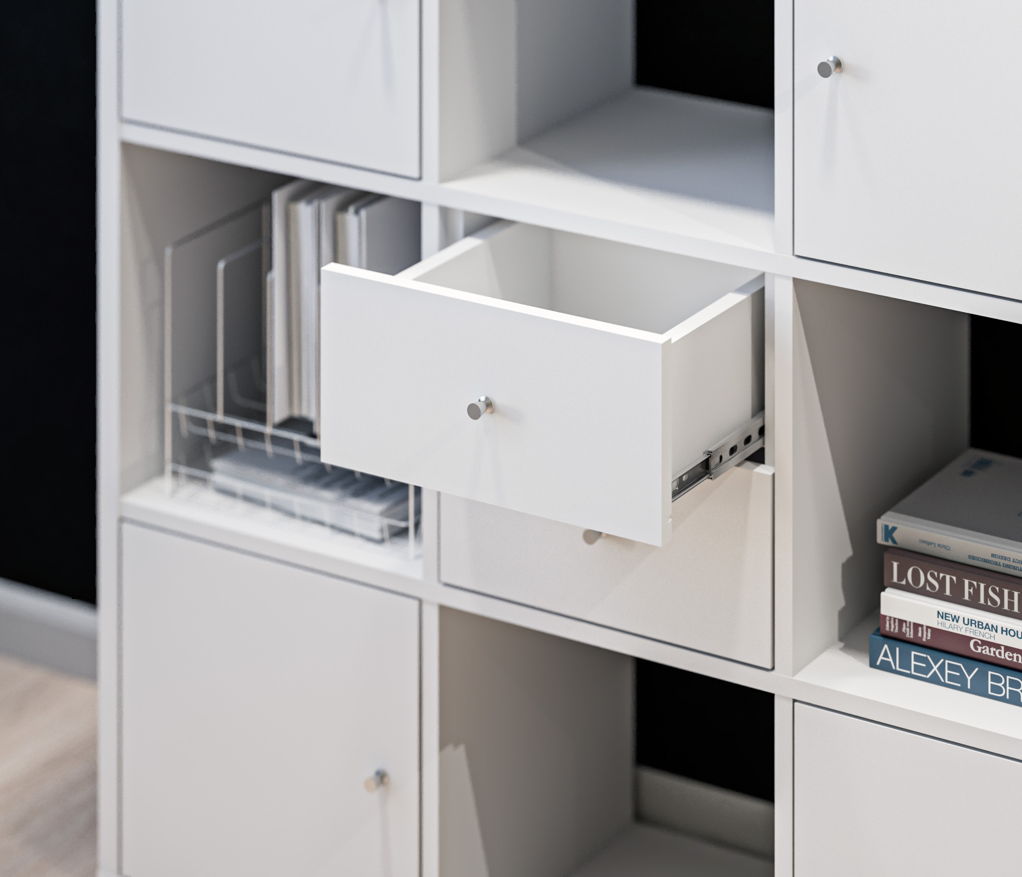 Не плохие ящики специально для стеллажа заказал, красиво выглядят. Не очень дорогие.
