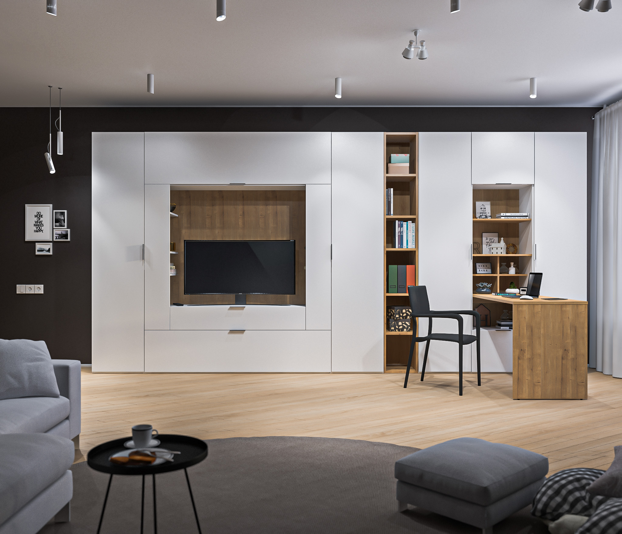 Модульная система Мальта создана для ценителей стиля. Белый цвет мебели зрительно расширяет границы комнаты и делает интерьер светлее, а текстура дерева создает атмосферу уюта и близости к природе. Комбинируя элементы нашей новой коллекции, вы сможете создать для себя неповторимый и комфортный интерьер.