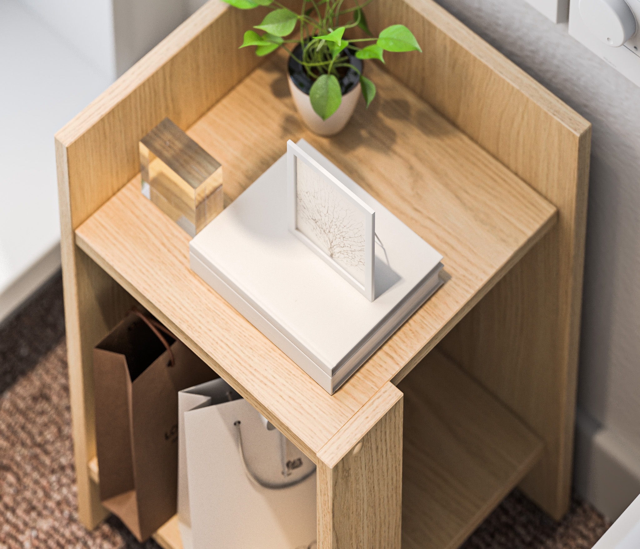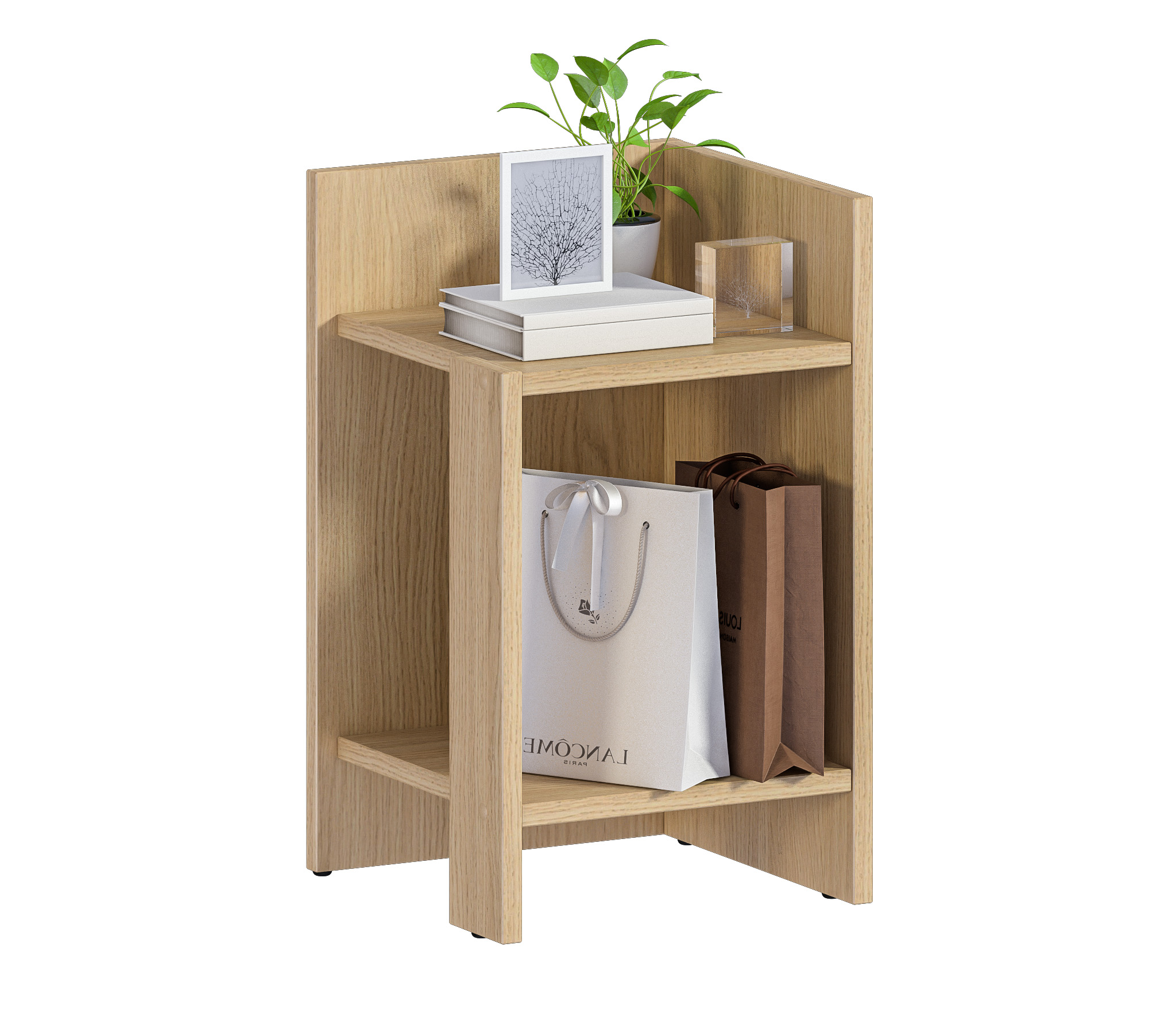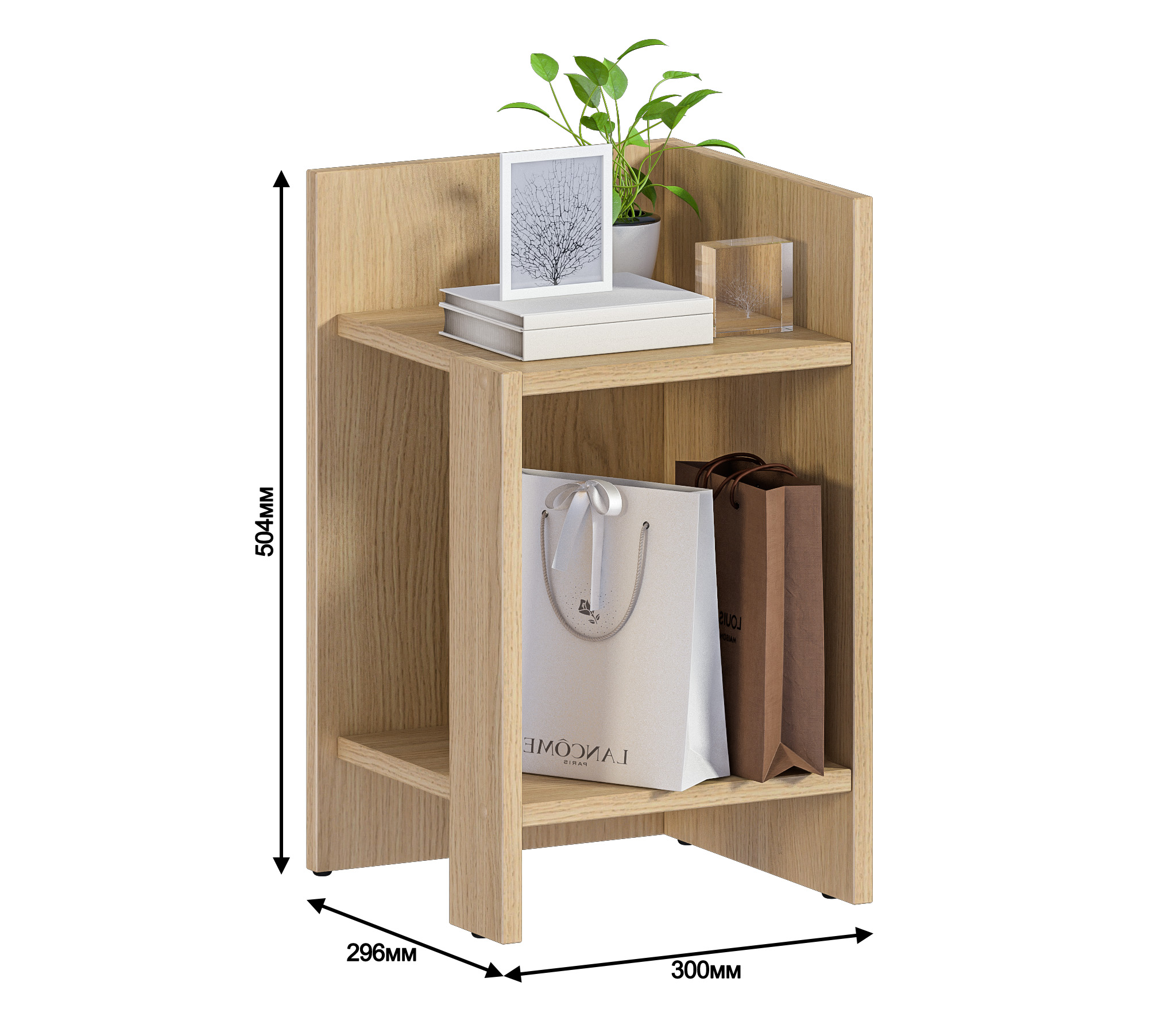 При компактных габаритных размерах – ширина 30см, высота 50,4 см и глубина 29,6 см, тумба довольно вместительная: на имеющихся полочках можно разместить книги, аксессуары и предметы декора. Тумбу можно использовать и как придиванный столик, за которым можно перекусить или выпить чашечку чая.
