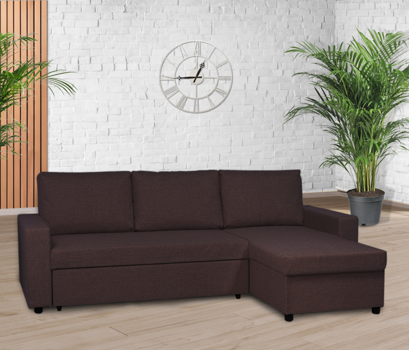 Угловой диван-кровать Турин, рогожка (Коричневый)