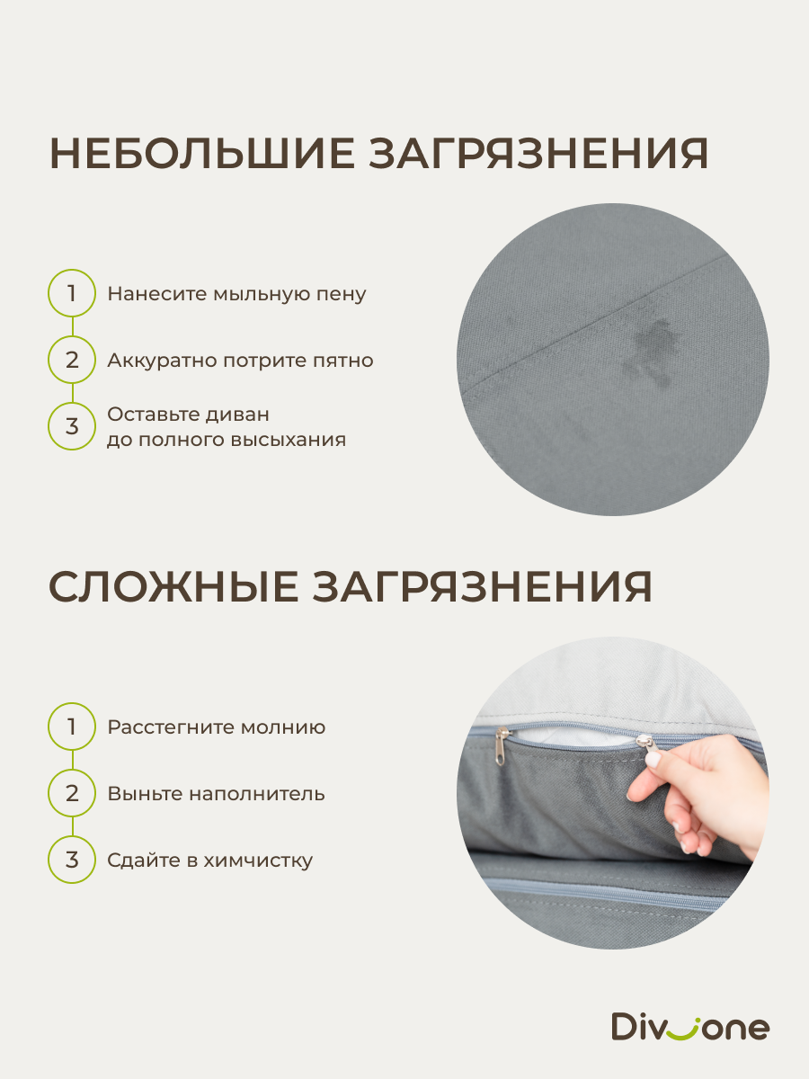 Наши бескаркасные диваны для городской квартиры и загородной дачи изготовлены из материалов высокого качества. Основа выполнена из гипоаллергененного ППУ (Пенополиуретан) толщиной 40 сантиметров, что обеспечивает упругость. Велюр имеет износостойкость — 50 000 циклов по тесту Мартиндейла, что более чем вдвое превышает стандартные требования. Обивка выполнена из качественных материалов, которые легко чистятся и не выцветают со временем. Наполнение декоративых подушек представляет собой смесь упругой поролоновой крошки и воздушного синтепуха. Такой состав препятствует быстрой усадке, эффективно поддерживает первозданную форму изделия и продлевает его срок службы на долгие годы. Таким образом, долговечность и сохранение превосходного внешнего вида гарантированы. Диванчик отлично подходит для сна благодаря своему ортопедическому эффекту.