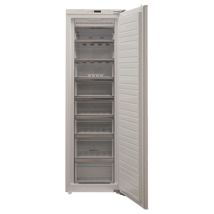 Встраиваемая морозильная камера, Электронное управление, Класс энергопотребления: А+, Система автоматической разморозки NoFrost, Режим «Супер заморозка», LED освещение камеры, Ящик увеличенного размера SpacePlus, Жесткое крепление двери, Перенавешиваемая дверь, Объем морозильного отделения: 197 л, Габаритные размеры (в/ш/г), 1770х540х545 мм.