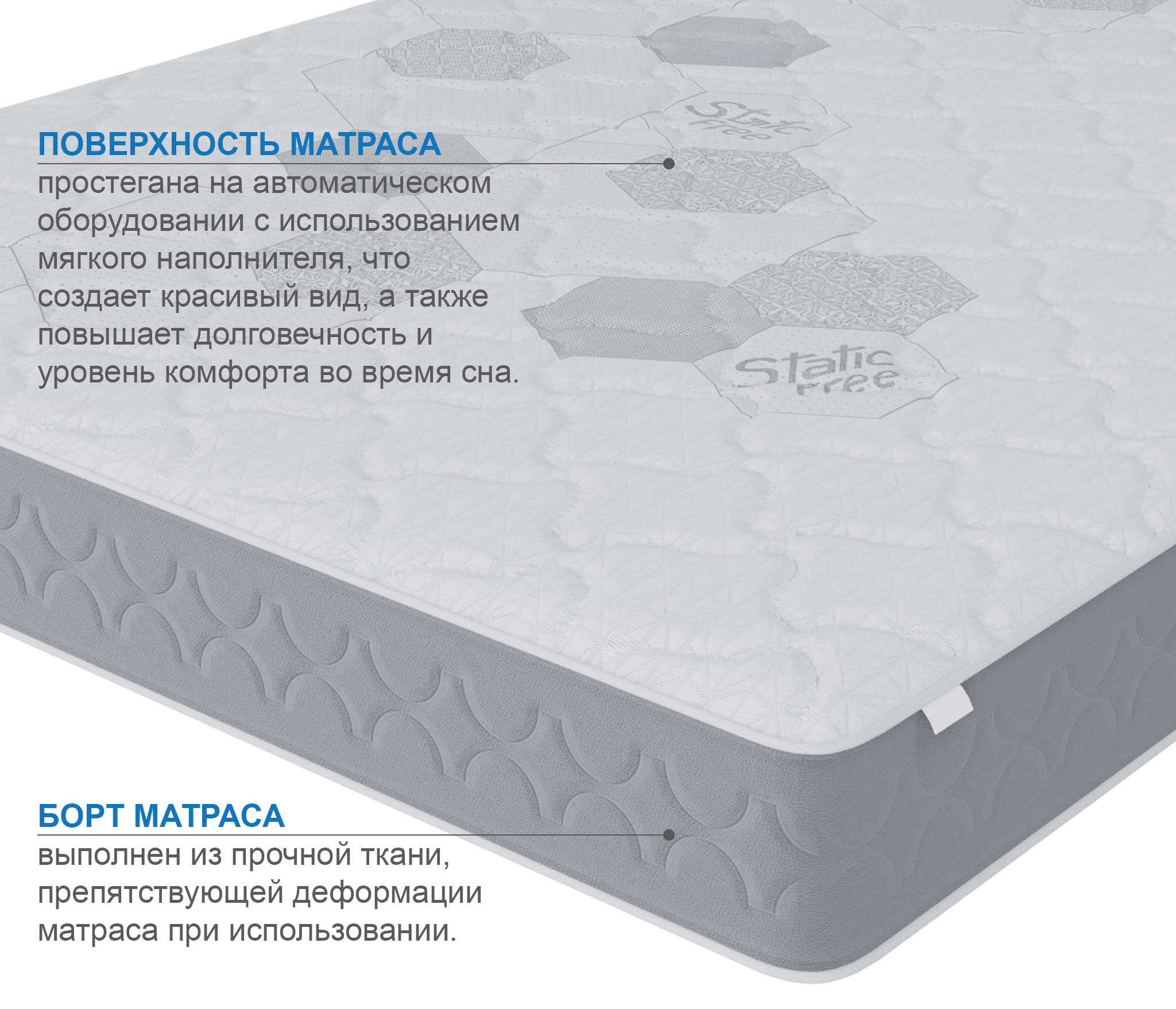 С обеих сторон матраса в качестве комфортного слоя используется 2 см искусственного латекса, этот материал очень долговечный и упругий, благодаря этому слою на этом матрасе будет одинаково комфортно людям разных весовых категорий. Для распределения нагрузки и придания необходимой жесткости используется латексированный кокосовый лист, который кладется под латекс. В основе матраса лежит блок независимых пружин, благодаря которому матрас будет индивидуально подстраиваться под каждого спящего и оказывать обратное давление только там, где это действительно необходимо. Чехол матраса сделан из плотного мягкого трикотажа, который стегается на 15 мм пене и синтепоне, что добавляет не много мягкости. Обращаем ваше внимание на то, что любой матрас отвечает за правильность положения во время сна нижнего и среднего отделов позвоночника, а за правильность положения шейного отдела отвечает правильно подобранная ортопедическая подушка. Рекомендуем использование с защитным чехлом AquaStop. |