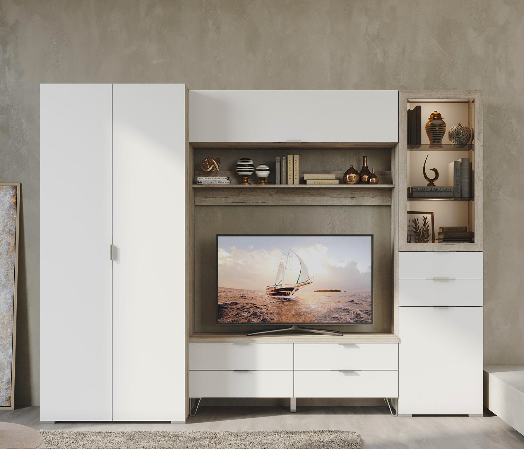 Тумба Анима ТБ-3002, дуб серый, белый Код R0000299709