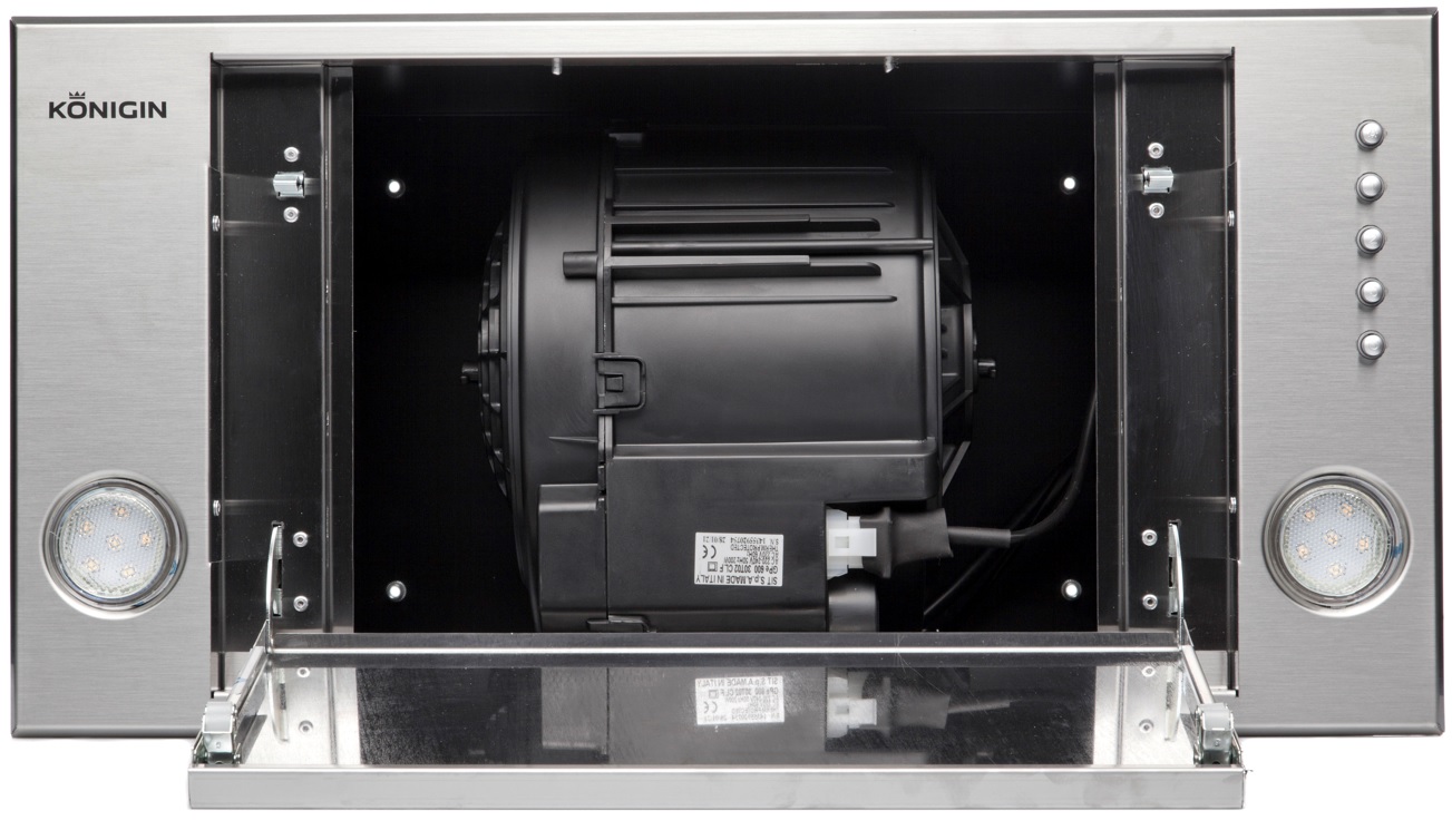 • Компактная, полностью встраиваемая вытяжка. Ее можно успешно разместить практически в каждом шкафу, благодаря чему она занимает очень мало места. Стильное сочетание закаленного стекла и окрашенной стали. Декоративный люк из закаленного стекла скрывает пятислойный алюминиевый, жироулавливающий фильтр с усиленной конструкцией