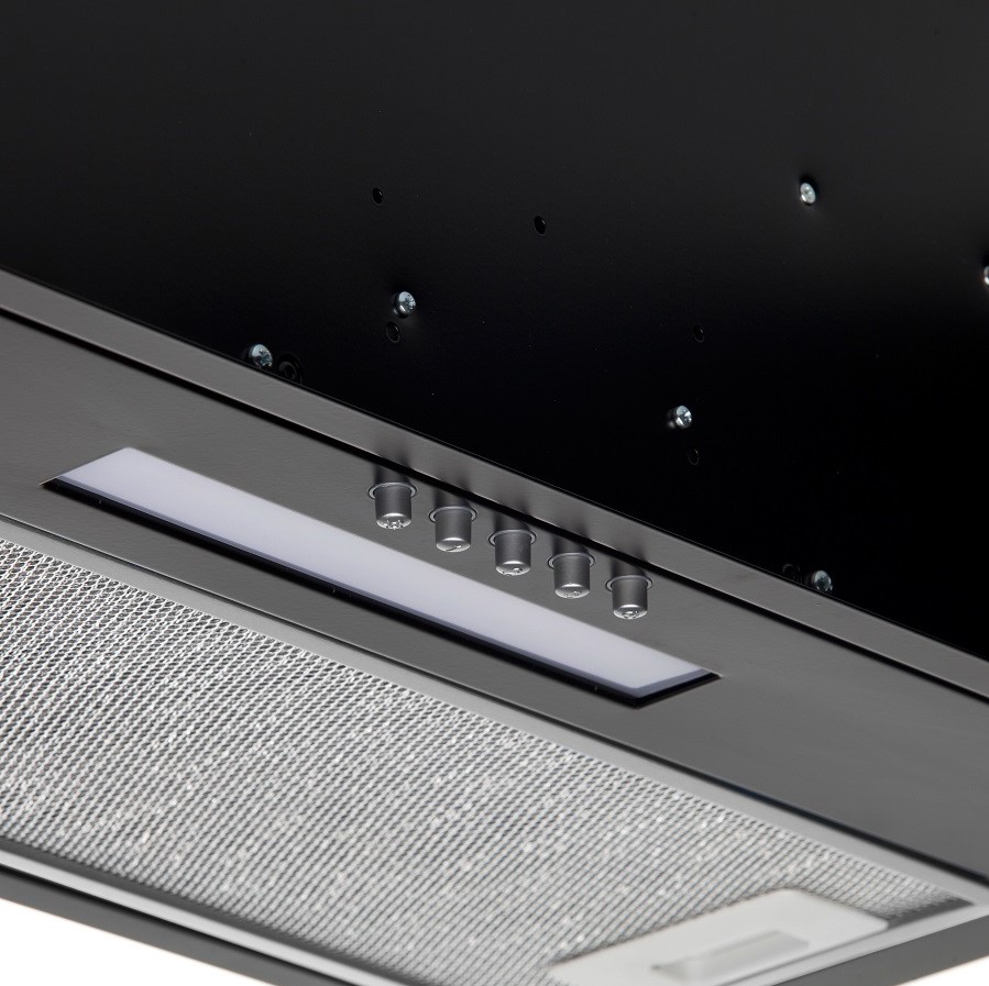 • Фасад вытяжки полностью закрывает нижнюю полку – это позволяет монтировать вытяжку в кухонные шкафчики вместо нижней полки (дна). Удобная система монтажа